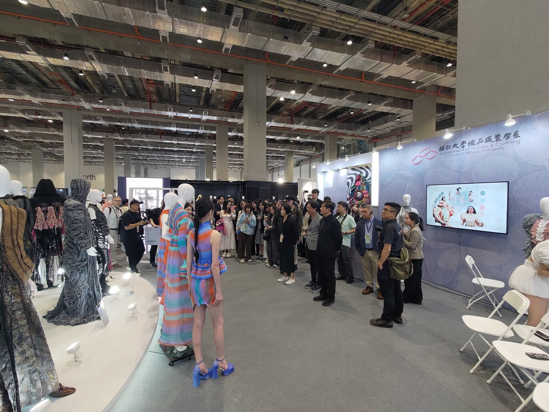 輔仁大學織品服裝學系以「Vanguard」為主題,於2025年新一代設計展南港展覽館二館精彩亮相。本展覽彰顯學系學生在織品服裝領域的卓越學習成果,除了讓許多對時尚嚮往的高中莘莘學子近一步與系上設計學生交流, 同時向產業界推薦優秀新人才,為紡織服裝產業注入創新活力。