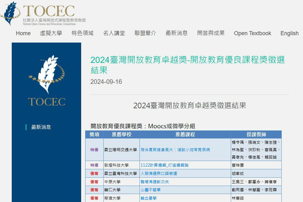 輔大磨課師課程榮獲MOOCs組優等獎,自主學習修課人次創新高