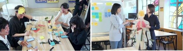 隨著健康意識提升,醫療教育的重要性也與日俱增。但對無醫學背景的師生而言,醫療知識往往艱澀且抽象。為提升跨域醫療教學的可親近性,中心偕同應用美術系余佳穎老師、護理學系楊蕙菱老師,以台灣高齡化議題為核心,合作開發兼具視覺化與操作性的「人體器官教具」,透過觸覺與情境式學習,引導跨領域學員理解身體器官在不同年齡階段的變化,並結合臨床案例與實證數據,從更貼近生活的角度探索健康議題,為後續跨域討論與創新實作奠定基礎。