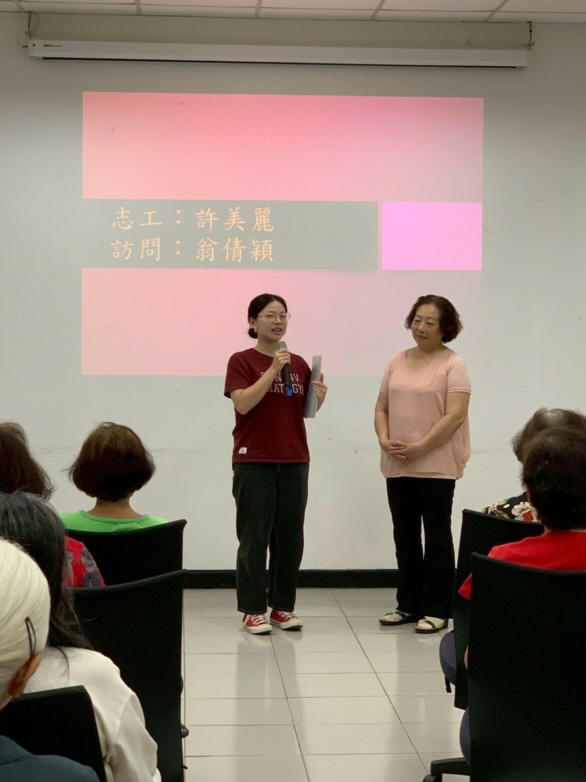 另一位志工則表示:「當志工是一段平凡卻深刻的歷程,謝謝學生們花時間聽我回顧過去,讓我覺得這些年的付出被看見了。那種感覺,就像是默默無聲的時光突然有了光亮。」分享中,更有志工提到這段訪談歷程比「生前告別式」還來得有力量與意義,並且動情分享:「這樣的課程,讓年輕學子學會傾聽、讓銀髮長者重溫過往。那是一次生命的交會,也是一種相互照亮的過程。學生在訪談中不只關心我,更讓我重新檢視自己的價值與使命。」