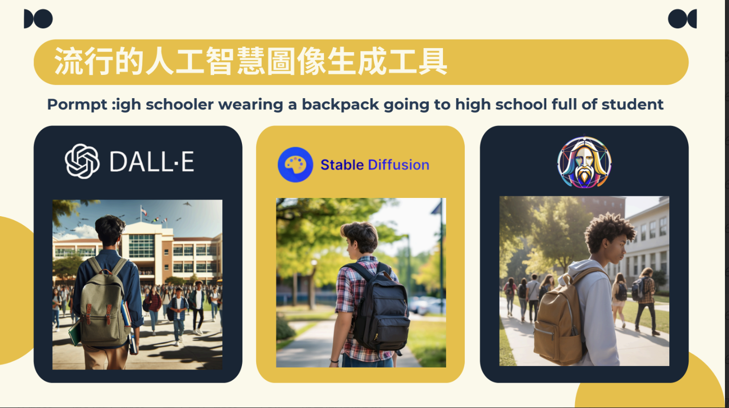 「跨領域文化轉譯組」展現了學生運用創意和與AI合作各種作品。例如,介紹新莊老店的遊戲、介紹拿坡里的元宇宙、與AI合作進行分析西班牙與香港的校園生活之差異,還有透過AI在生活中練習發音等等。得到特獎的小組是應美系一年級的作品:文創談話雜誌(《漫談》。年紀輕輕的應美系大一學生製作一點也不馬虎;強調構圖與風格一致,絕不侵權,證明AI運用仍須以專業知識與技能為出發點。在AI應用的相關產業,我們不是重複動作的技術操作人員,而要運用多種素養與3Q(IQ智力商數、EQ情緒商數和AQ逆境商數)人機共學,成為遵守專業倫理的「AI馴獸師」。