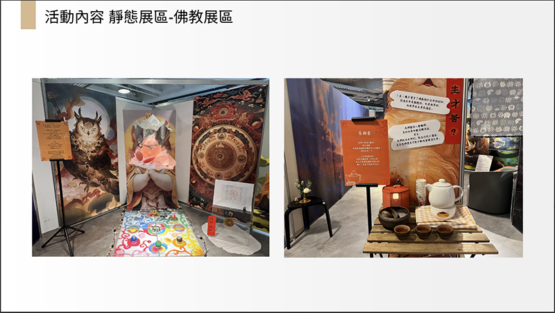 「跨文化溝通與社會實踐」組的學生透過不同的溝通媒介展示不同國家與宗教的文化與產品;例如,與法國學生分享兩地的飲食文化、行銷北歐酒品與美食、製作新莊與板橋遊程導覽。最特別的是宗教系大四同學介紹的是死亡之旅;也就是《歿棧》畢展。把死亡當成一個旅途(「行前」、「途中」和「下車」),以沉浸式展出讓參展者選擇角色後,體驗介紹不同宗教的生命觀和死後世界。