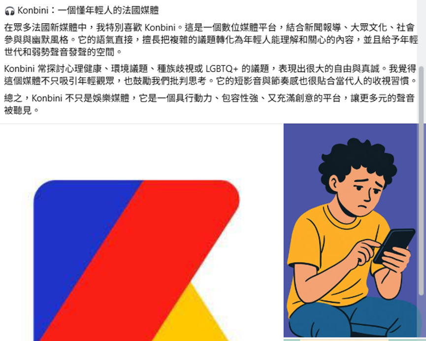 本計畫本計畫由英、法、義、日等語系教師共同參與,設計多門結合AI生成工具的外語課程,透過語言訓練、媒體識讀與數位創作相結合,帶領學生實際體驗「人機協作」的學習歷程。例如法語課程以新聞閱讀為核心,結合ChatGPT與Gemini協助學生進行資料比對、事實查核與媒體立場分析,培養學生批判思考與資訊素養;義大利文課則引導學生以AI輔助文本改寫與語篇重組,深化語言運用與寫作邏輯訓練。