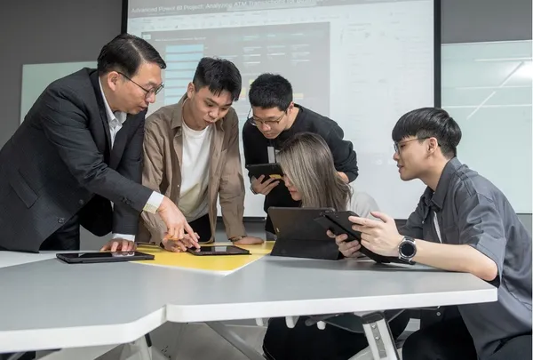 在智慧商務實驗室的學習情境中,學生以行動載具為平台,並於分組討論中搭配數位模擬軟體進行市場策略與決策演練,以跨領域訓練方式將數位決策、永續管理與市場分析融入課程情境,協助學生在實作中培養面向未來的資訊素養、永續意識與整合型能力。企管系顧宜錚主任表示,iPad x 雲端系統帶來的不僅是操作便利,更讓學生在課程中具備「查找→思考→實作→修正」的迭代學習能力,讓原本抽象的策略概念,以更具體的方式在課堂中被理解、拆解與應用,學生的參與度也明顯提升。