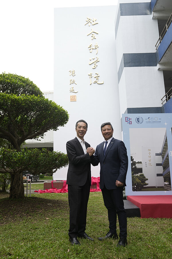 慶逢輔仁大學創校百年盛事,社會科學院於114年5月1日(星期四)上午盛大舉行伯達樓「社會科學院揭牌祈福典禮」,為社科院專用教學研究空間嶄新氣象揭開序幕。本次典禮特別邀請輔大傑出校友陳致遠學長(經濟系19屆)親臨揭牌,為社科院蓬勃發展注入祝福與能量。